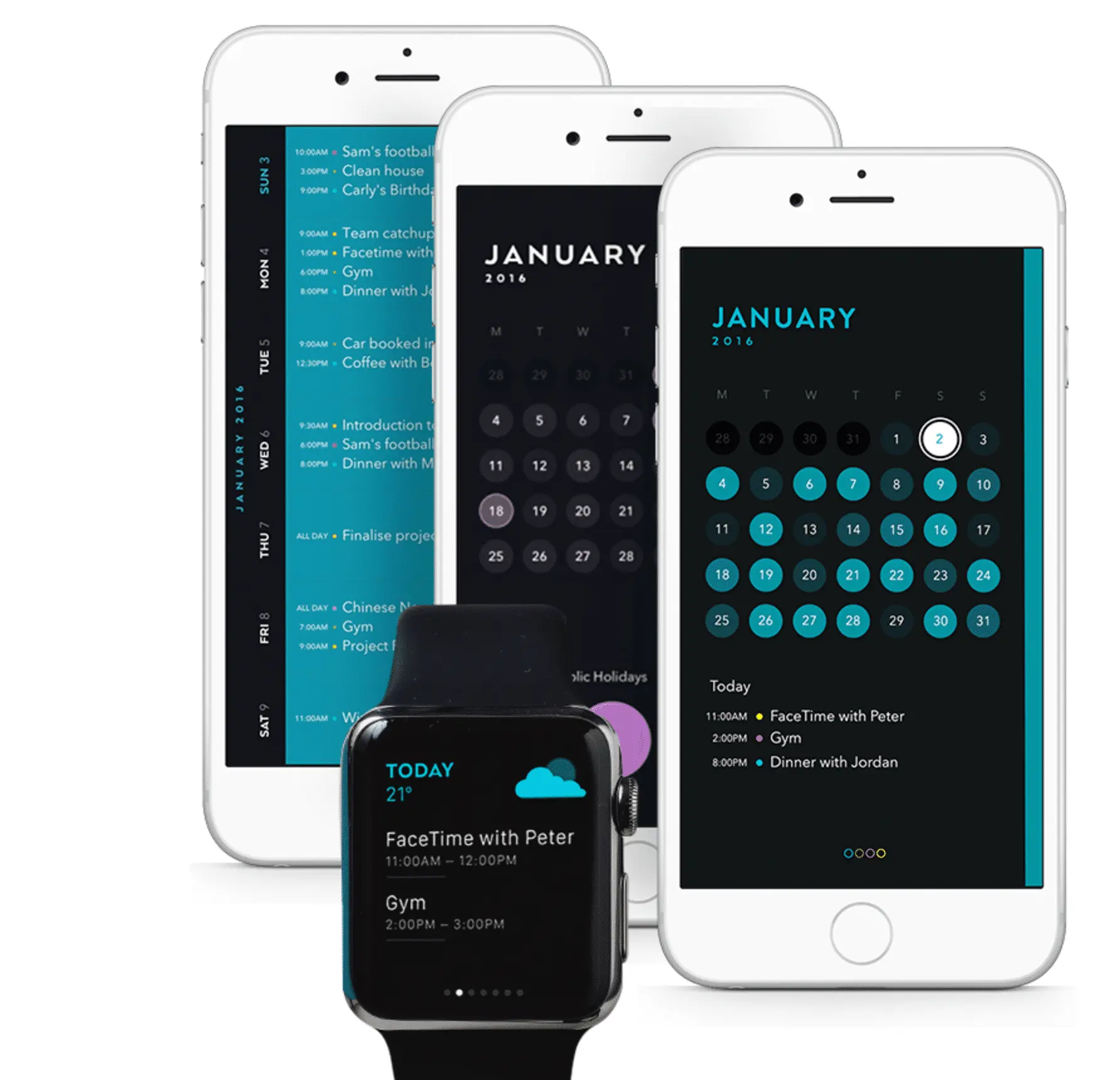 As i am very visual the colours attracted me the most. Downloaded and off i went. The integration between the days and the months make using this app so much easier to navigate The colour co-ordination makes it easy to see what days are full and the integration with maps, contacts are effortless.